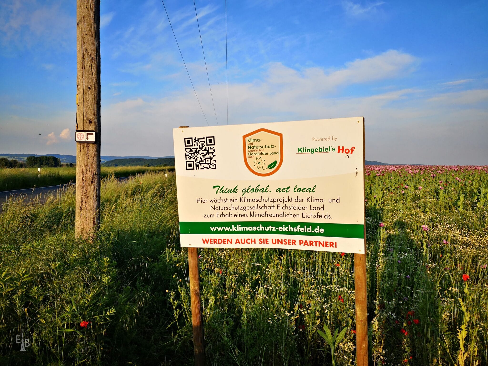 Auch die Mohnfelder gehören zu den Projekten der Naturschutzgesellschaft. Darauf weist ein großes Schild an der K120 zwischen Immingerode und Nesselröden hin. Über den QR-Code gibt es mehr Infos direkt auf der Webseite. Geplant ist, den Blaumohn dann als regionales Produkt an Bäckereien zu verkaufen oder auch in Klingebiels Hofladen in Immingerode anzubieten.