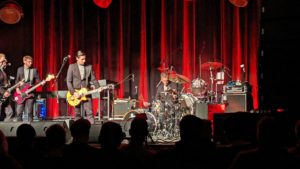 Als Vorband stimmten „The Jenglers“ aus Duderstadt ein: Zwei Gitarren, Bass, Schlagzeug, kein Schnickschnack. Nicht nur die Instrumentalisierung, auch das Outfit – graue Rollkragenpullis unterm Anzug – ließen sich irgendwo zwischen Beatles und Byrds einordnen, aber die eingängigen und gut gemachten Eigenkompositionen klangen dann deutlich rockiger.
