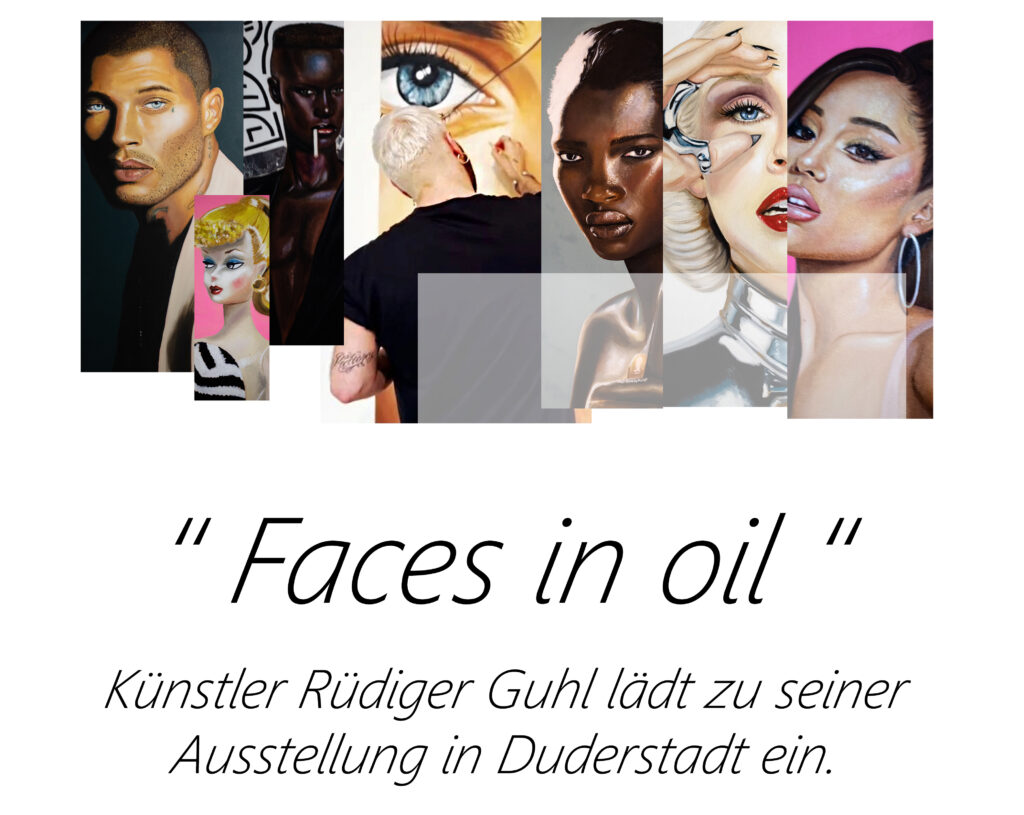 Rüdiger Guhl ist Make-up-Artist, Fotograf und Porträtmaler. Unter dem Titel „Faces in oil“ stellt er in Kooperation mit der Duderstädterin Inka Bauer-Klein großformatige Ölgemälde in der Duderstädter Marktstraße 35 aus. Zur Vernissage am Samstag, 8. November 2025, sind alle Interessierten eingeladen. Beginn ist um 19 Uhr.