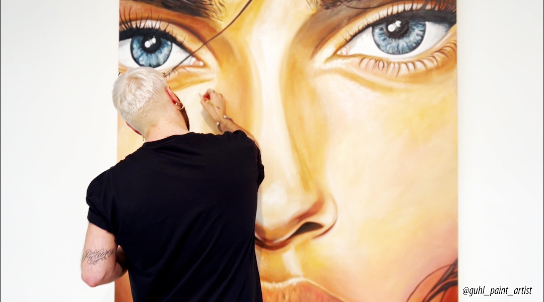 Während der Corona-Pandemie wurde es jedoch nahezu unmöglich, weiter als Fotograf und Visagist zu arbeiten. So erinnerte sich Rüdiger Guhl an seine künstlerischen Wurzeln und begann wieder zu malen. Und auch auf der Leinwand widmete er sich dem menschlichen Gesicht – meistens dem einer Frau. Er schätzt die Verbindung von Emotionalität und Stärke im weiblichen Konterfei.