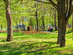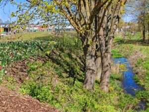 Wo sich der LGS-Augarten ausdehnt, befanden sich früher Garagenhöfe und Industrie. Nun können sich die Gäste an Audiostationen informieren über das, was hier entstanden ist: beispielsweise ein Stadtacker voller essbarer Pflanzen, Themengärten, Streuobstwiesen, Spielplätze, eine Ausgrabungsstätte zum mittelalterlichen Dorf Kirrode, das grüne Klassenzimmer und vieles mehr. Nördlich der Ohne befindet sich die Gartenstadt mit verschiedenen Schaugärten, Holzbau, Landwirtschaft und dem Friedhof, der als Ort der Ruhe und als weitere grüne Lunge ins Konzept integriert wurde.