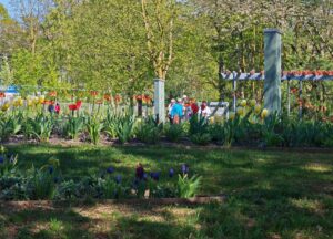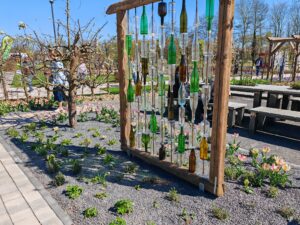 Mit dem Shuttlebus oder in 15 Minuten zu Fuß ist der Tüffers Garten als weitere Station der LGS zu erreichen. Unter alten Bäumen, Vogelgezwitscher und zwischen terrassenförmigen Blumenbeeten kann ein Eindruck entstehen, wie entspannend auch der Augarten in den kommenden Jahren wirken könnte, wenn die Pflanzen und Bäume gewachsen sind und der große Trubel vorbei sein wird.