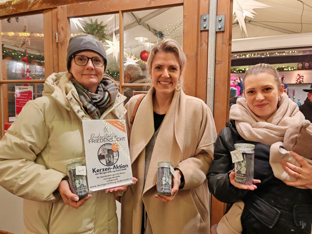 Pünktlich zur Adventszeit hat die Bürgerstiftung Duderstadt erneut ihre Kerzenaktion gestartet. Die Kuratoriumsmitglieder Daniela Jung-Dietrich, Franziska Thyssen und Lisa Jung präsentieren das „Friedenslicht 2026“ auf dem Duderstädter Weihnachtstreff. Die Erlöse gehen wieder in Förderprojekte für Kinder und Jugendliche in der Region.