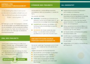 GLL ist ein Kooperationsprogramm zwischen den Landesverbänden der gesetzlichen Krankenkassen und der Landesvereinigung für Gesundheit und Akademie für Sozialmedizin Niedersachsen e.V. mit dem Ziel, Schulen zu einer gesunden Lebenswelt für alle Beteiligten zu entwickeln. Schulen können sich um eine Teilnahme am GLL-Projekt bewerben. Ziel ist, eine Schulentwicklung anzustoßen, die Erziehungs- und Bildungsarbeit mit gesundheitlichen Aspekten verbindet. Vorhandene Gesundheitsressourcen sollen gestärkt, Über- und Fehlbelastungen abgebaut werden. Bei der Planung und Umsetzung der Maßnahmen sollen die individuellen Besonderheiten der jeweiligen Schule berücksichtigt werden. Die Schulen werden über zwei Jahre betreut und können anschließend das Angebot eines Netzwerks nutzen.