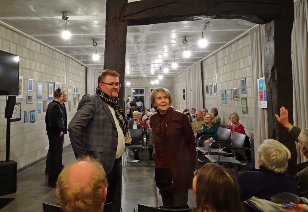 (Titelbild: Vernissage der Sondermann-Ausstellung in der Kulturstube, Bürgermeister Thorsten Feike und Renate Sondermann, Foto: H. Mecke)