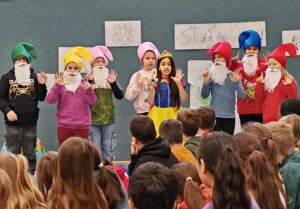 Die Kinder stellten ihre Projekte und Erkenntnisse auf unterhaltsame Weise vor, in Liedern, Schauspiel, Gedichten und auf Plakaten. Zu den nachhaltigen Aktivitäten in den Klima-AGs gehörten unter anderem das Bauen von Nistkästen, die Baumpflanzaktion auf einer Streuobstwiese und das Mosten von Saft. Aber auch in den Schulgebäuden engagierten sich die Kinder. Mit den Hausmeistern ging es durch Heizungskeller und über die Schulhöfe, um herauszufinden, wie Energieeinsparung und der sorgsame Umgang mit Ressourcen zum Klimaschutz beitragen können.