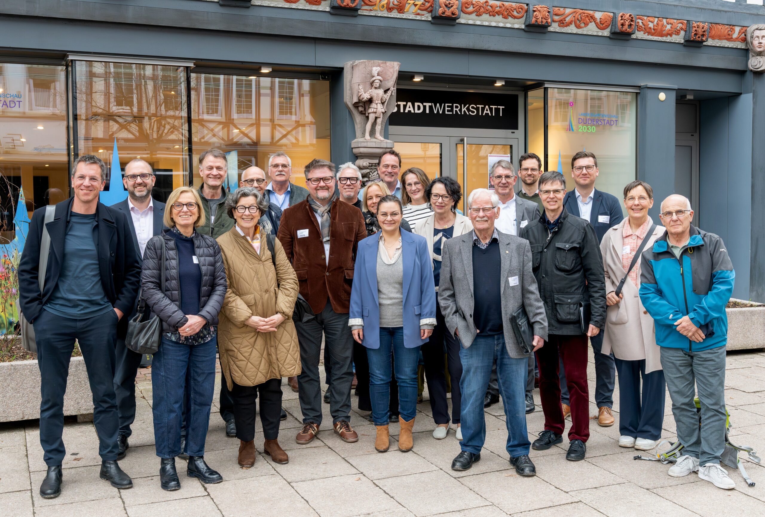 Titelbild: Gruppenfoto vor der Laga-Stadtwerkstatt in der Duderstädter Marktstraße (Foto: Wille/Stadt Duderstadt)