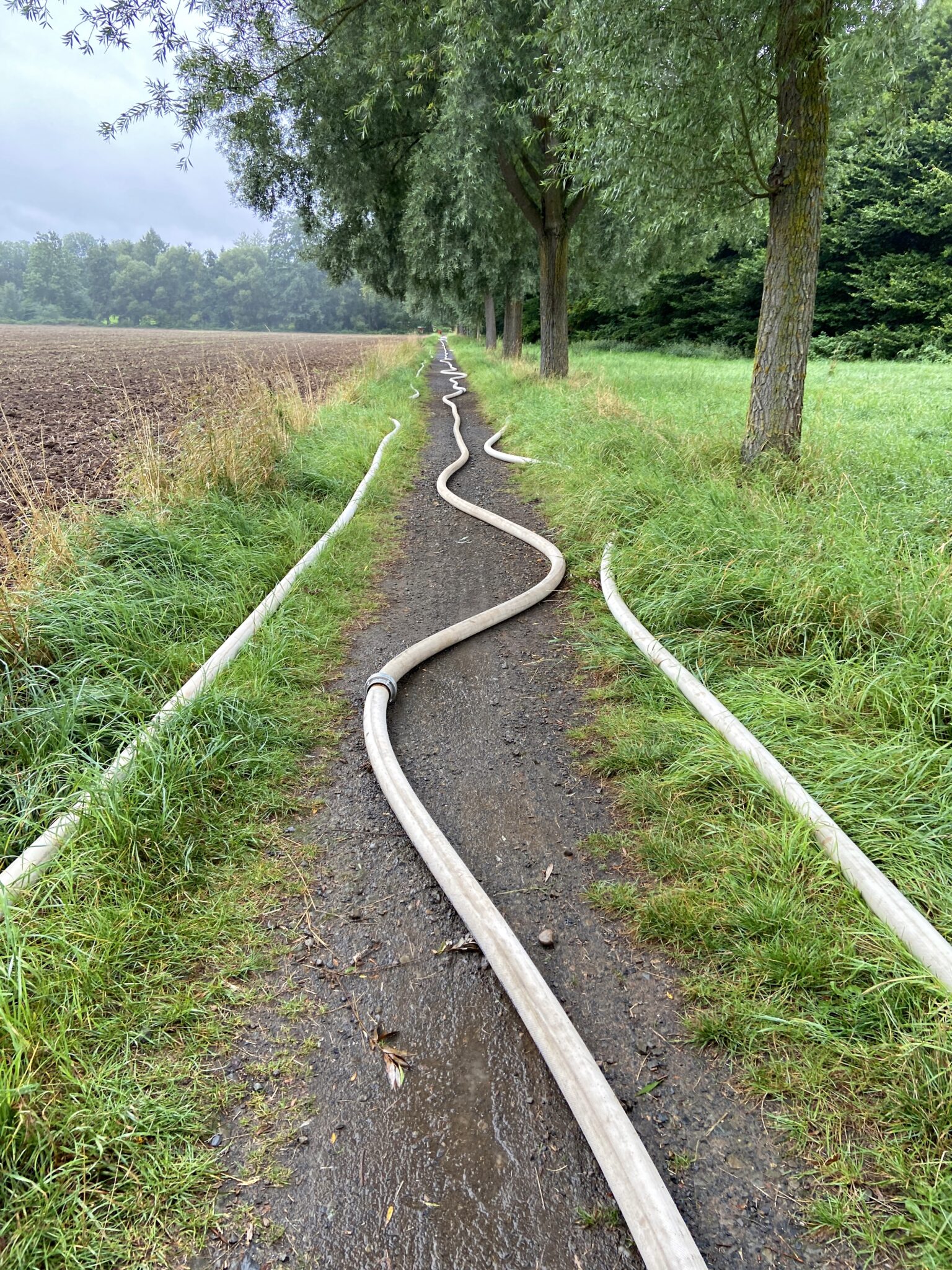 Fast den ganzen Tag hat es gedauert, bis die 700 Quadratmeter große Teichfläche mit Wasser befüllt war. Dazu waren rund 30 Feuerwehrleute aus Duderstadt, Brochthausen, Werxhausen, Breitenberg, Langenhagen, Immingerode und Esplingerode im Einsatz. Drei 400 Meter lange Leitungen mussten verlegt, die Pumpen und Technik positioniert und kontrolliert werden.