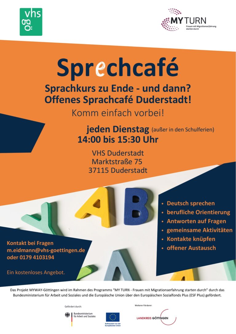 Deutsch sprechen, Kontakte knüpfen, Austausch – das alles bietet das offene Sprechcafé für Menschen mit Migrationshintergrund in der VHS-Geschäftsstelle Duderstadt, Marktstraße 75.