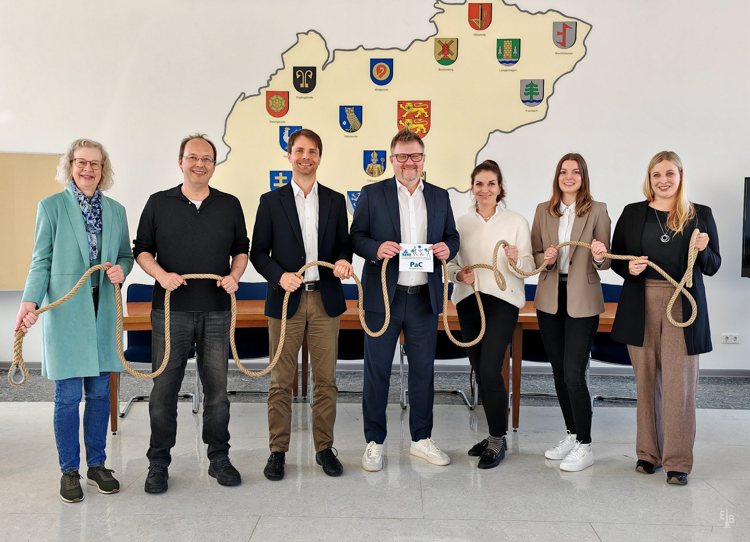 Bürgermeister Thorsten Feike begrüßte im Sitzungssaaal des Duderstädter Stadthauses Kreisdezernent Conrad Finger, Isabel Lubojanski vom Vorstandsteam der Caritas Südniedersachsen, Katharina Poltze, PaC-Koordinatorin des Landkreises Göttingen, und Julia Kastendiek, um das neu angepasste Management der PaC-Angebote vorzustellen. Ziel ist es, Probleme von Kindern und Jugendlichen rechtzeitig zu erkennen, um über Aufklärung und gezielte Schulung Hilfe zu leisten, bevor größere Schwierigkeiten auftreten. Netzwerke und Präventionsketten sollen in den beteiligten Kommunen verankert werden.