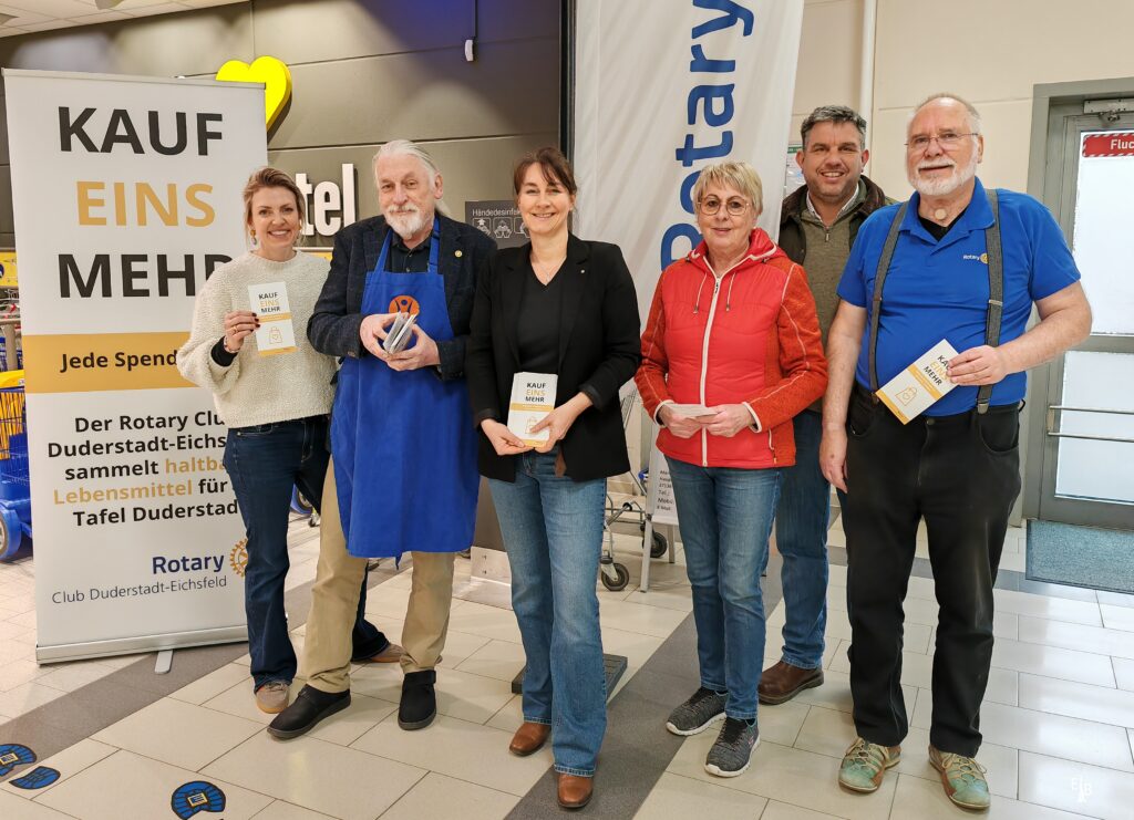 Unter dem Motto „Kauf eins mehr“ hat der Rotary Club Duderstadt-Eichsfeld eine Spendenaktion gestartet, um die Tafel Duderstadt zu unterstützen. Insgesamt sind 38 Kisten voller Lebensmittel, Haushalts- und Hygieneartikel zusammengekommen, die nun bedürftigen Menschen in schwierigen Lebenssituationen zugute kommen.