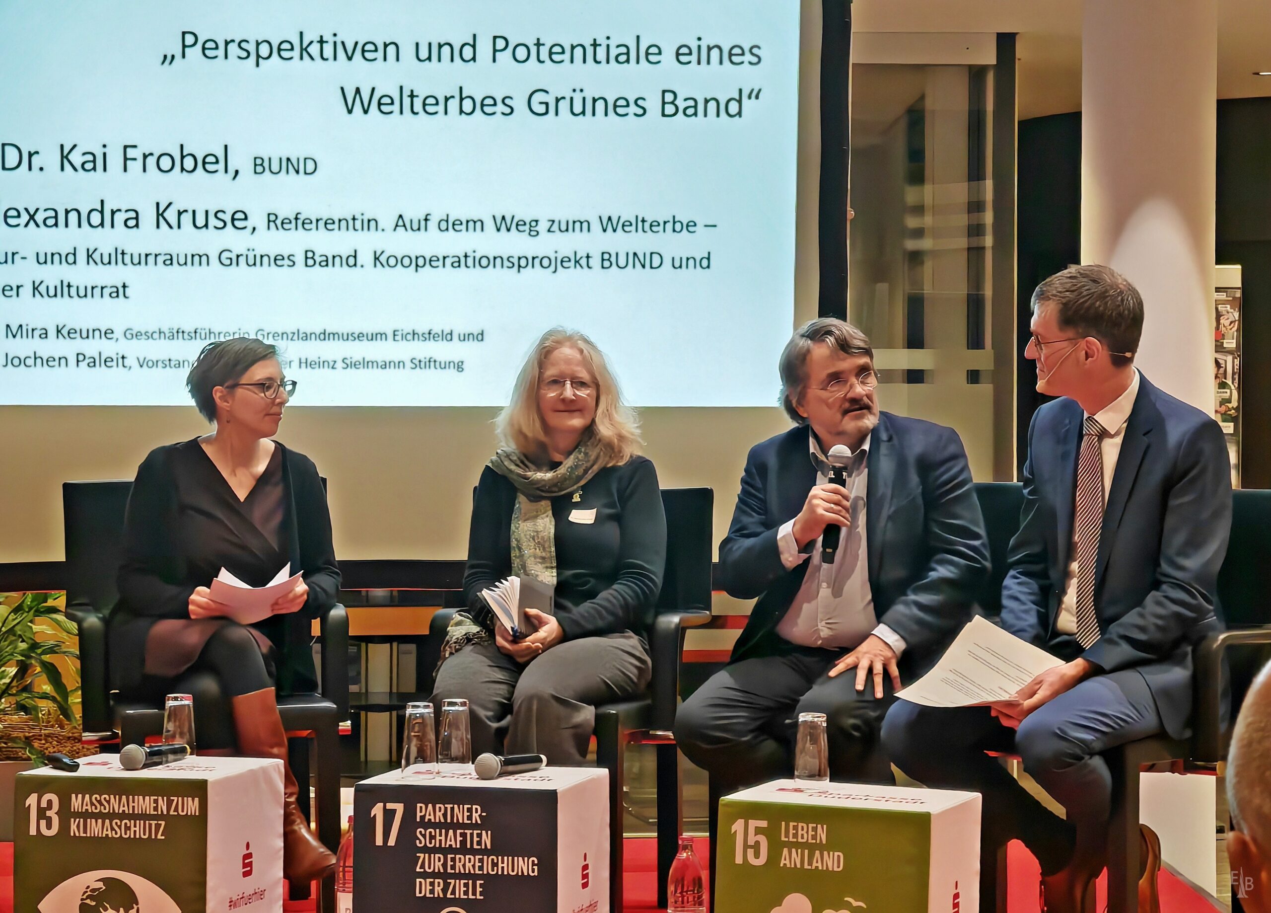 Zu einem Themenabend „Welterbe Grünes Band: Perspektiven für das Eichsfeld“ haben die Heinz Sielmann Stiftung und das Grenzlandmuseum Eichsfeld gemeinsam eingeladen. Die Veranstaltung mit Vorträgen und Podiumsdiskussion hat im Foyer der Sparkasse Duderstadt stattgefunden.