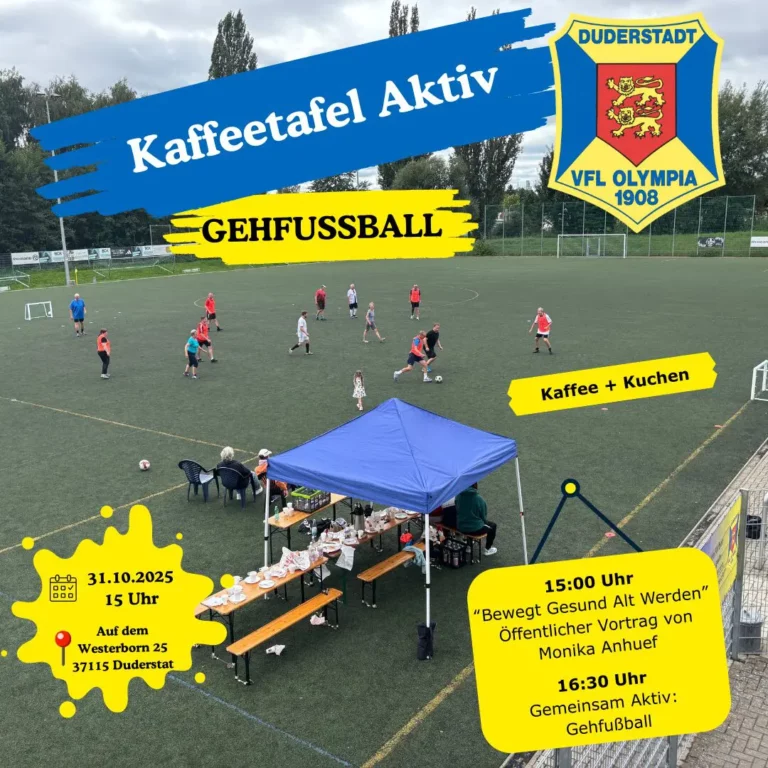 Der VfL Olympia lädt ein zur „Kaffeetafel Aktiv“ am Freitag, 31. Oktober 2025, von 15 bis 18 Uhr auf dem Sportgelände Am