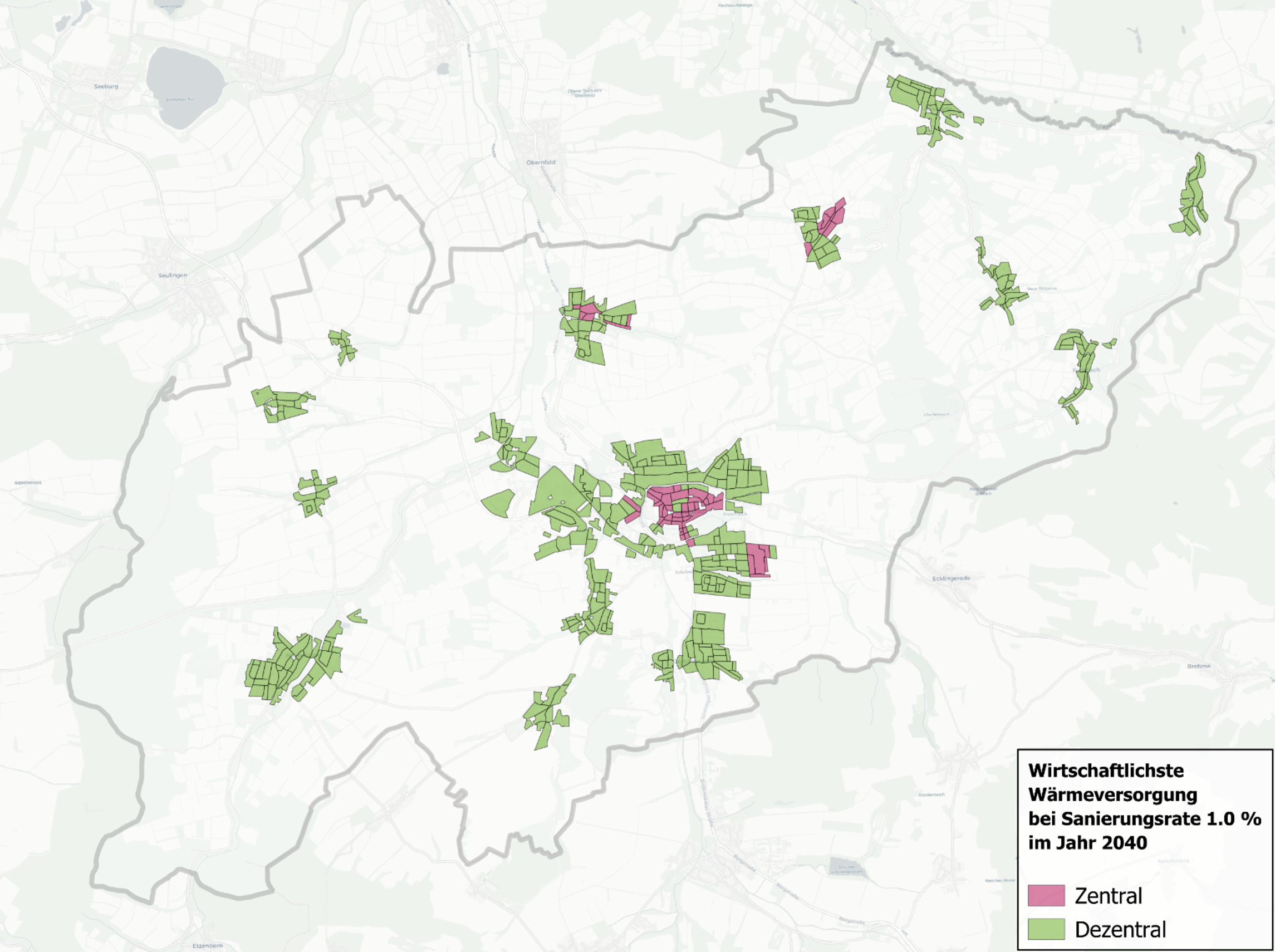 Der Wärmeplan zeigt mithilfe von Szenarien auf, wie die Wärmeversorgung bis zum Jahr 2040 treibhausgasneutral aufgestellt werden kann. Die künftige Wärmeversorgung in Duderstadt erfolgt gemäß der Untersuchungen zum Großteil dezentral und regenerativ, beispielsweise über Wärmepumpen. In Bereichen mit dichter Bebauung, wie der historischen Altstadt sowie Teilen der Ortsteile Breitenberg und Mingerode, könnten zusätzlich Nahwärmenetze einen Teil des Wärmebedarfs decken. Die Ergebnisse sind mithilfe von interaktiven Wärmekarten öffentlich im Internet unter https://waermeplanungen.de/duderstadt-basis/ einsehbar.